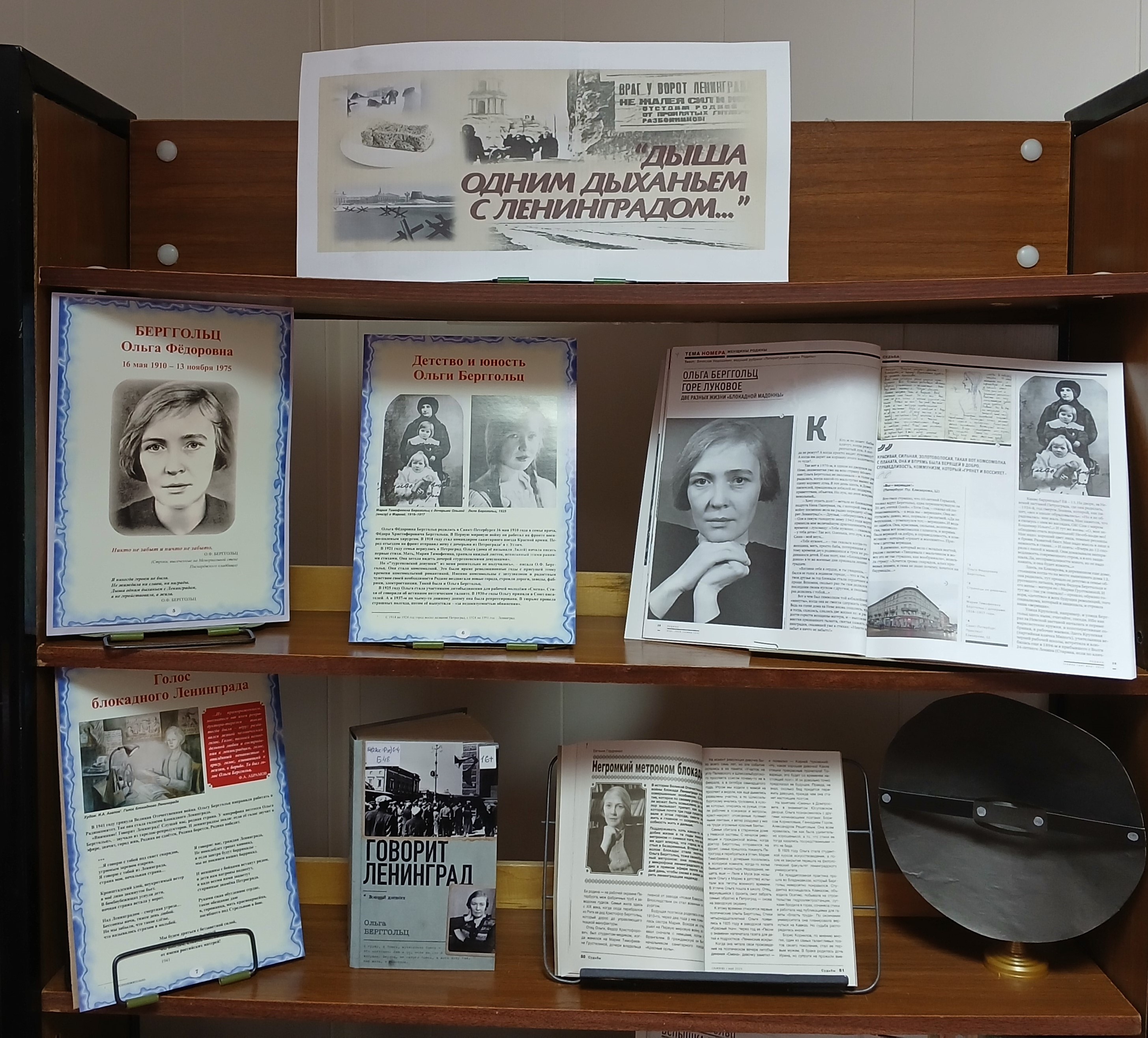 В читальном зале библиотеки к юбилею поэтессы представлена книжно-иллюстративная выставка-память «Дыша одним дыханьем с Ленинградом...».