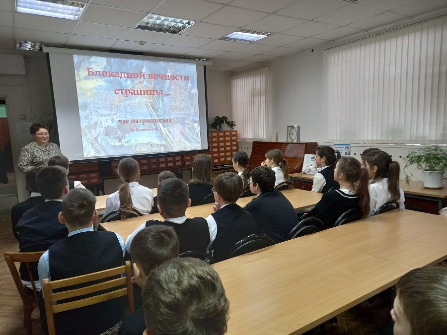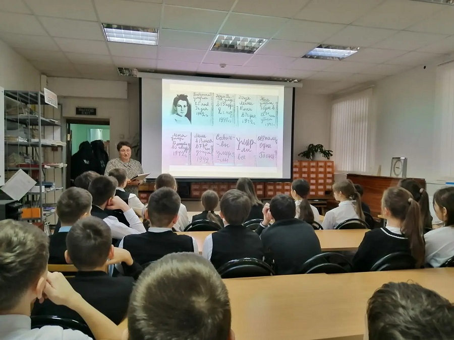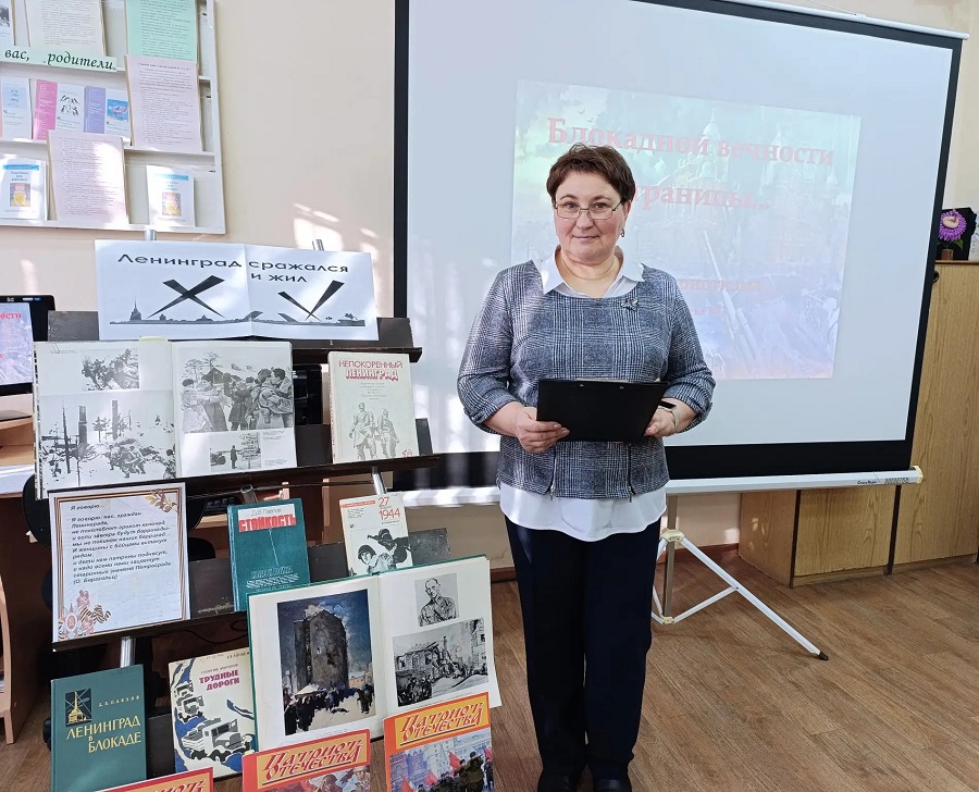 Сегодня, спустя десятилетия, наша святая обязанность – бережно хранить и передавать память о подвиге народа. Для учащихся школ города сотрудники библиотеки провели уроки памяти «Блокадной вечности страницы». В ходе мероприятия вспоминались события 82-летней давности. Ребят познакомили с суровыми условиями жизни блокадного города по отрывкам из записей очевидцев, как военнослужащих, так и обычных граждан: о том периоде времени, людях и судьбах, о суточной норме хлеба на человека, узнали о Дороге жизни – единственной дороге, соединяющей город со страной; о ленинградских детях – прозвучал рассказ о судьбе юной ленинградки Тани Савичевой, чей дневник является одним из свидетельств, преступлений фашизма. Итог урока учащиеся подвели сами – подвиг, совершенный людьми во время блокады, нельзя чем-либо измерить. Его нужно помнить всегда и чтить память героев.