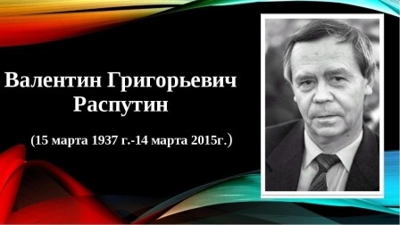Валентин Григорьевич Распутин родился 15 марта 1937 года – советский писатель и публицист, общественный деятель. Один из наиболее значительных представителей «деревенской прозы».