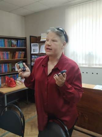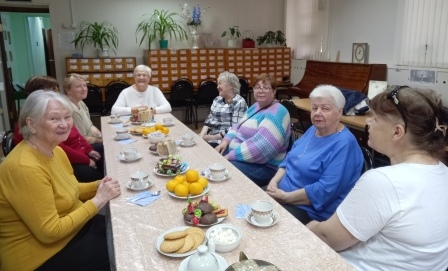 Встреча прошла за чашкой чая. Говорили о новостях общества. Комиссарова Е. сделала сообщение о новых гаджетах и приложениях в телефоне для облегчения жизни слепых и слабовидящих людей.