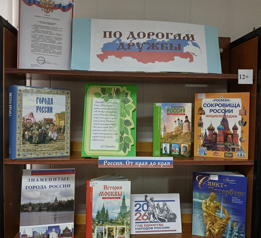 Выставка «По дорогам дружбы» к Году единства народов России в читальном зале библиотеки – это возможность для читателей отправиться в виртуальное путешествие по всей России.