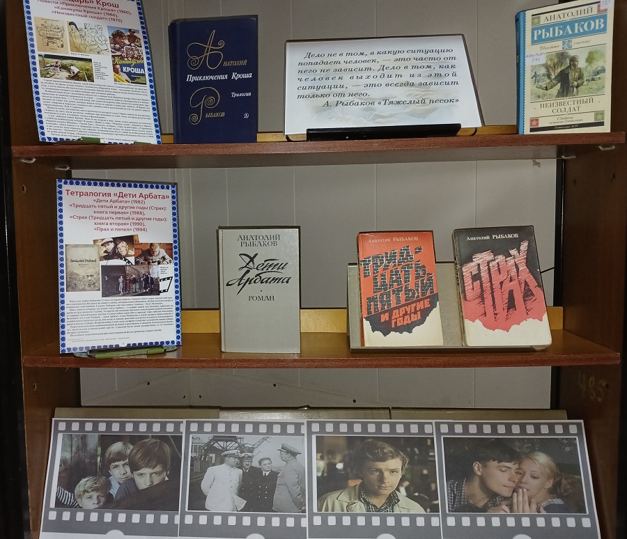 Всех, кто хочет познакомиться с жизнью и творчеством А. Рыбакова, приглашаем в читальный зал библиотеки на выставку «Анатолий Рыбаков: судьба и время»