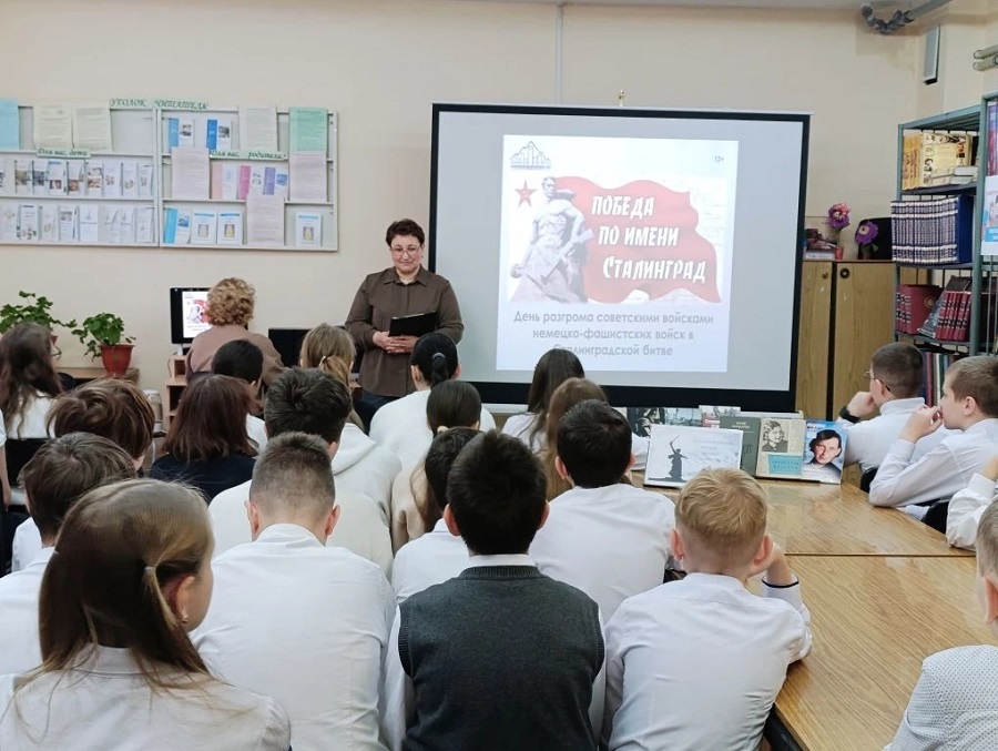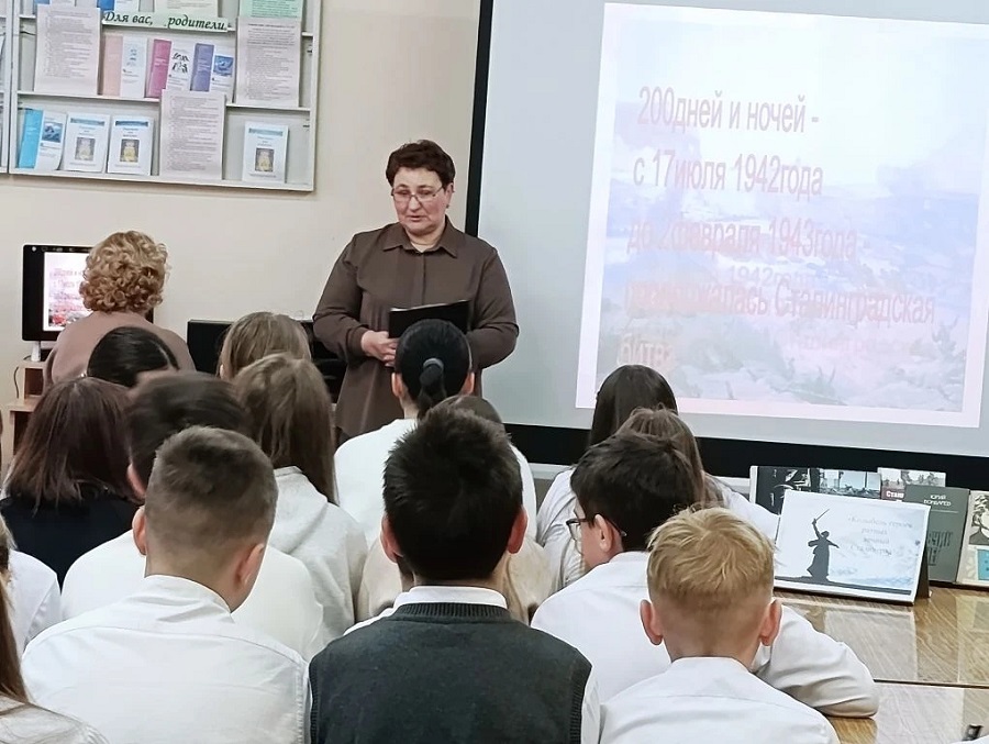 О том, как развивались события осенью 1942 — зимой 1943 гг библиотекари рассказали учащимся школ города на уроках мужества. Сталинградская битва — решающее сражение Великой Отечественной войны, в котором советские войска одержали крупнейшую победу. Участники мероприятий узнали об обороне «Дома Павлова», ставшем важным опорным пунктом, и о Мамаевом кургане. Школьников познакомили с героями Сталинградской битвы. Мероприятие сопровождается электронной презентацией и просмотром литературы о битве на Волге.