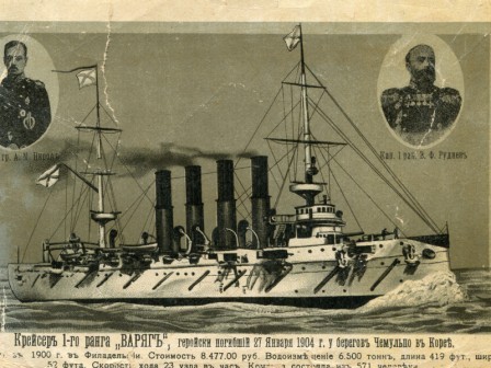 Крейсер «Варяг» вступил в строй в 1902-м. В своем классе он был сильнейшим и самым быстроходным кораблем в мире: при водоизмещении в 6500 т он имел скорость хода 23 узла (44 км/час), нес 36 орудий, из них 24 крупнокалиберные, а также 6 торпедных аппаратов. Экипаж состоял из 18 офицеров и 535 матросов. Командовал крейсером капитан 1-го ранга Всеволод Федорович Руднев, потомственный моряк. К началу русско-японской войны «Варяг» выполнял миссию по охране русского посольства в Сеуле.