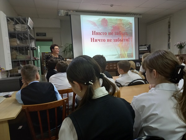 Урок исторической памяти, посвященный этой памятной дате прошел в библиотеке для учащихся 7 класса школы № 5.