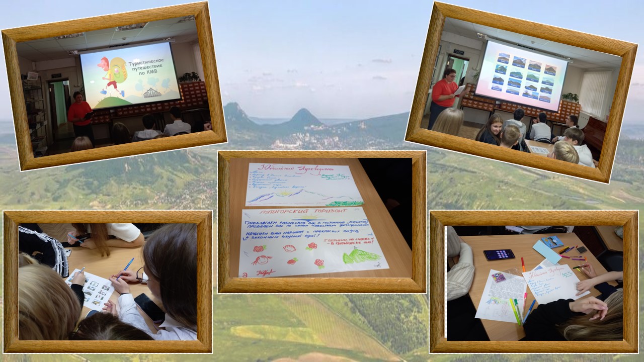 Ребята познакомились с историей открытия минеральных вод, приняли участие в викторине и сами попробовали свои силы в качестве туристических агентов, разделившись на команды, создали рекламные туристические постеры о городах КМВ.