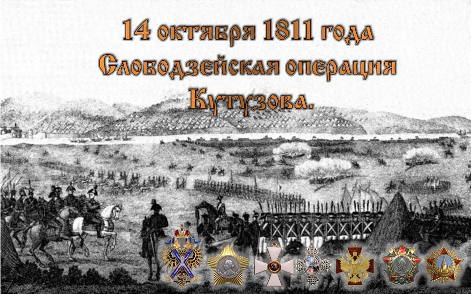 14 октября 1811 года, в ходе Рущукско-слободзейской операции (22 июня - 23 ноября 1811 года), армия Кутузова переправилась через Дунай и неожиданным ударом наголову разгромила 20-тысячное турецкое войско под Рущуком (ныне болгарский город Русе). Русские потеряли во время атаки всего 9 убитых и 40 раненых. Битва закончилась полным поражением турецкой армии и капитуляцией её остатков. Разгром турецкой армии поверг Османскую империю в шок и заставил пойти на скорейшие мирные переговоры. 16 (28) мая 1812 года в Бухаресте был подписан мирный договор, закрепивший победу России.