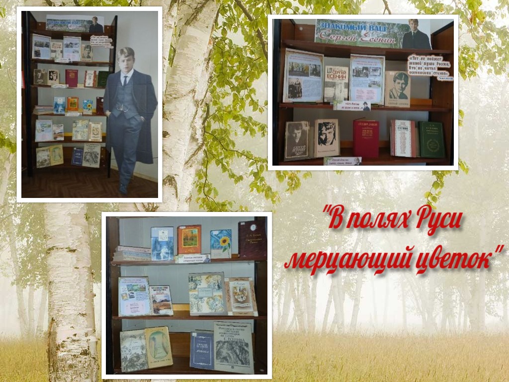 В читальном зале библиотеки к юбилею поэта открыта литературно-биографическая выставка-признание «Знакомый ваш - Сергей Есенин» с книгами о жизни и творчестве, воспоминаниями родных и близких поэта.