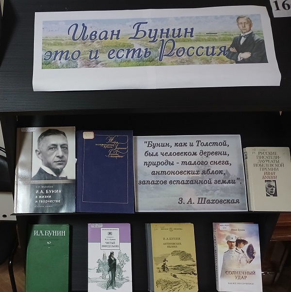 Мы приглашаем в читальный зал библиотеки на книжную выставку «Иван Бунин - это и есть Россия», подготовленную к юбилею писателя. Литература, представленная на выставке, рассказывает о жизни, судьбе и творческом пути писателя.