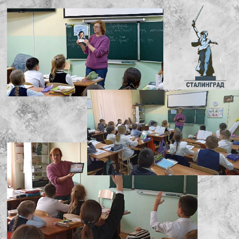 «На Мамаевом кургане тишина…». Под таким названием прошел час памяти для учащихся 4 классов СОШ № 4 г. Лермонтова. Сотрудники библиотеки рассказали детям о том, что Великая Отечественная война – это тяжелейшее испытание, выпавшее на долю всех жителей нашей страны от мало до велика. Ребята узнали о героической Сталинградской битве, о советских воинах, сражающихся за каждый метр волжской земли под девизом «За Волгой для нас земли нет!», о неприступном доме-крепости, удерживаемом разведчиками под командованием сержанта Якова Федотовича Павлова, о юной разведчице Людмиле Радыно, неоднократно рискующей жизнью, добывая ценные сведения о численности войск противника. В заключении мероприятия дети посмотрели презентацию «Мамаев курган» о величественном памятнике-ансамбле героям Сталинградской битвы.