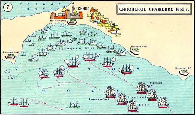 Это сражение, произошедшее (18) 30 ноября 1853 года, стало одним из крупных сражений Крымской войны, начинавшейся как конфликт России и Турции. Оно вошло в историю как последнее крупное сражение парусных флотов.