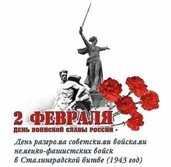 2 февраля отмечается День воинской славы России — День разгрома советскими войсками немецко-фашистских войск в Сталинградской битве (1943), установленный в соответствии с Федеральным законом от 13 марта 1995 года “О днях воинской славы и памятных датах России”.