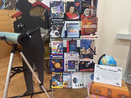 К 65-летию первого полета человека в космос оформлена книжная выставка. Книги помогут юным читателям узнать о древней науке астрономии, мире звёзд и галактик, планет и комет. Расскажут книги о первом лётчике-космонавте Юрии Алексеевиче Гагарине и о других бесстрашных покорителях космоса, о космических кораблях и загадках Вселенной.