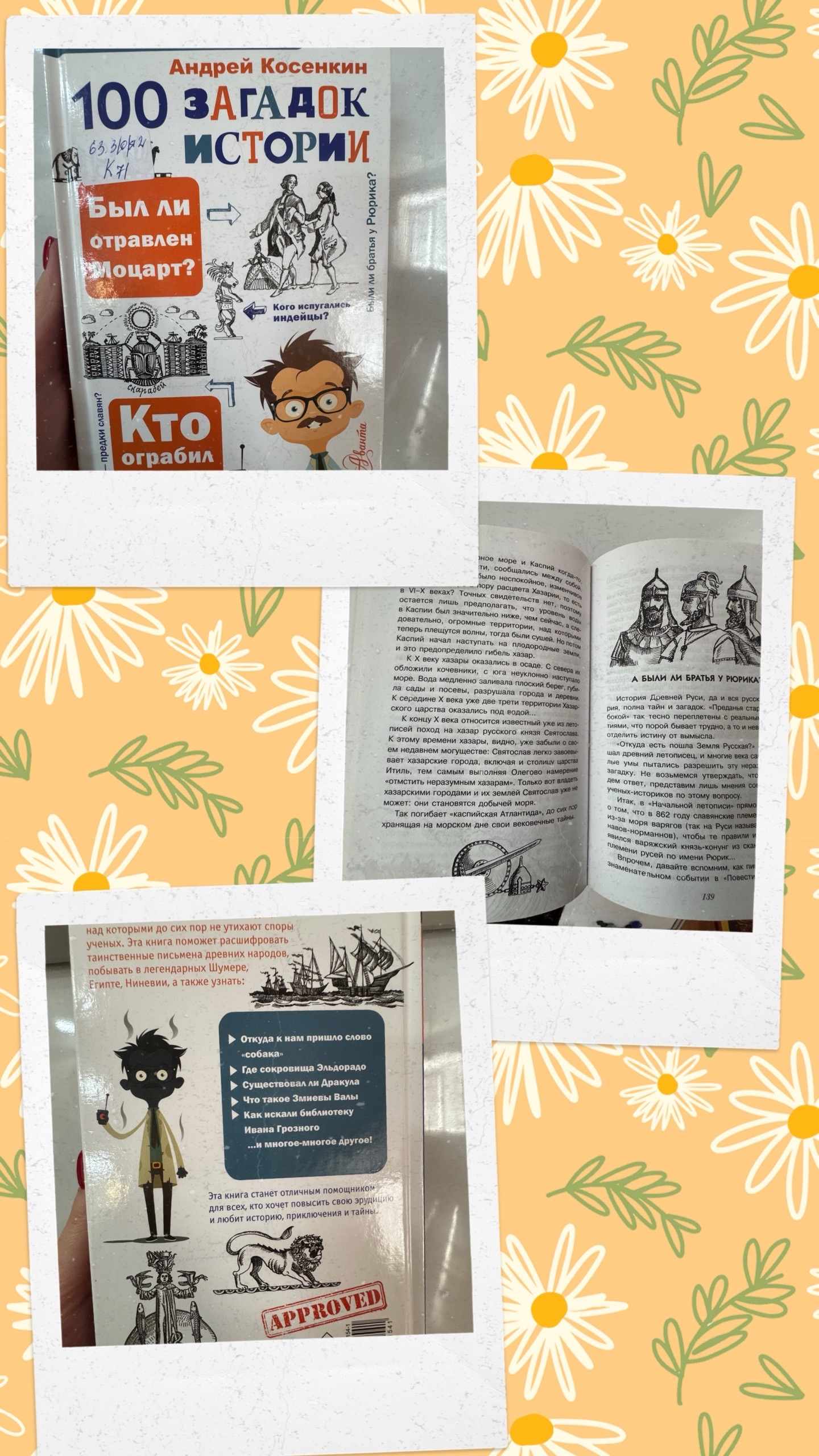 6+ 100 загадок истории/ Косенкин А. А., худож. Никитина Т. Ю. — Москва: Издательство АСТ, 2024. - 223, [1] с. : ил. - (Простая наука для детей). ISBN 978-5-17-165154-1. История хранит немало тайн и загадок, над разгадкой которых до сих пор бьются многие ученые. Эта книга поможет совершить удивительное путешествие во времени и узнать, какая цивилизация была самая древняя, что такое клинопись, правда ли, что скифы - предки славян, кем хотел стать Александр Македонский, как ошибся Генрих Шлиман, существовал ли в действительности Робин Гуд, почему мы никогда не забудем Цезаря, кто такие хазары, кого боялись индейцы майя и многое другое. Для среднего школьного возраста. |