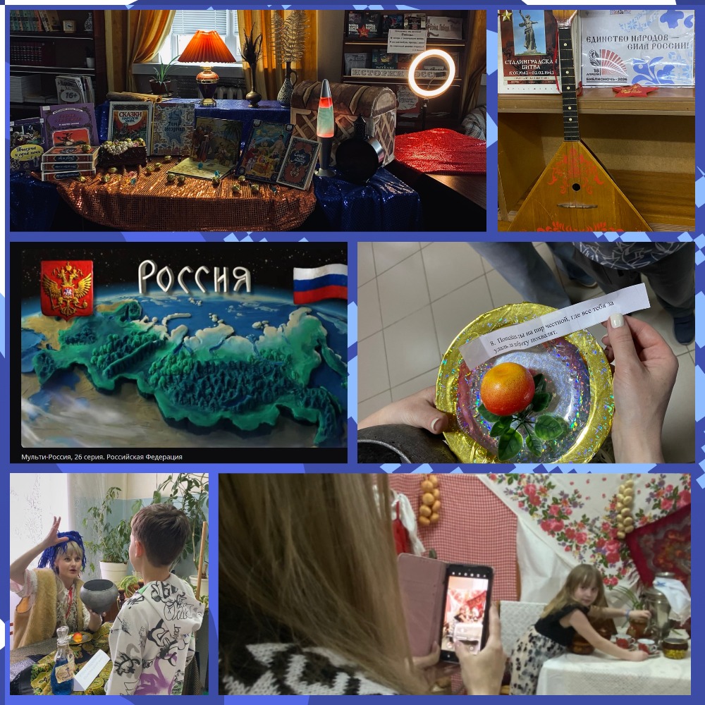 Для юных читателей в детской библиотеке «Знайка» проведена мозаика «Библионочь: время детское». Гости приняли участие в этно-квесте «В поисках народных музыкальных инструментов»: нашли и сфотографировали изображения музыкальных инструментов и их реальное воплощение. Особенно читателям понравились сказкотерапия «Изба-читальня», уголок с предсказаниями «Сказка ложь, да в неё намёк!», спортивно-игровая программа «Богатырские забавы» и мульти-эскспедиция «Там, на неведомых дорожках...».