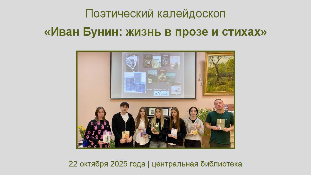 Поэтический калейдоскоп проведён к 155-летию со дня рождения русского писателя и поэта Ивана Алексеевича Бунина.