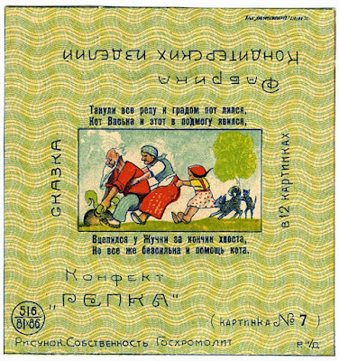 Лишь в середине 1930-х в кондитерской и пищевой промышленности происходит радикальный «переворот». Кондитерские изделия решительно деполитизируются, становятся предметом быта и отдыха, и лишаются функции агитации. В 1960-е гг. на коробках и этикетках появляются сюжеты, связанные с былинными и сказочными персонажами.