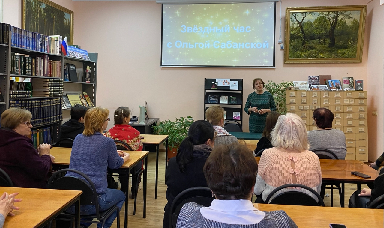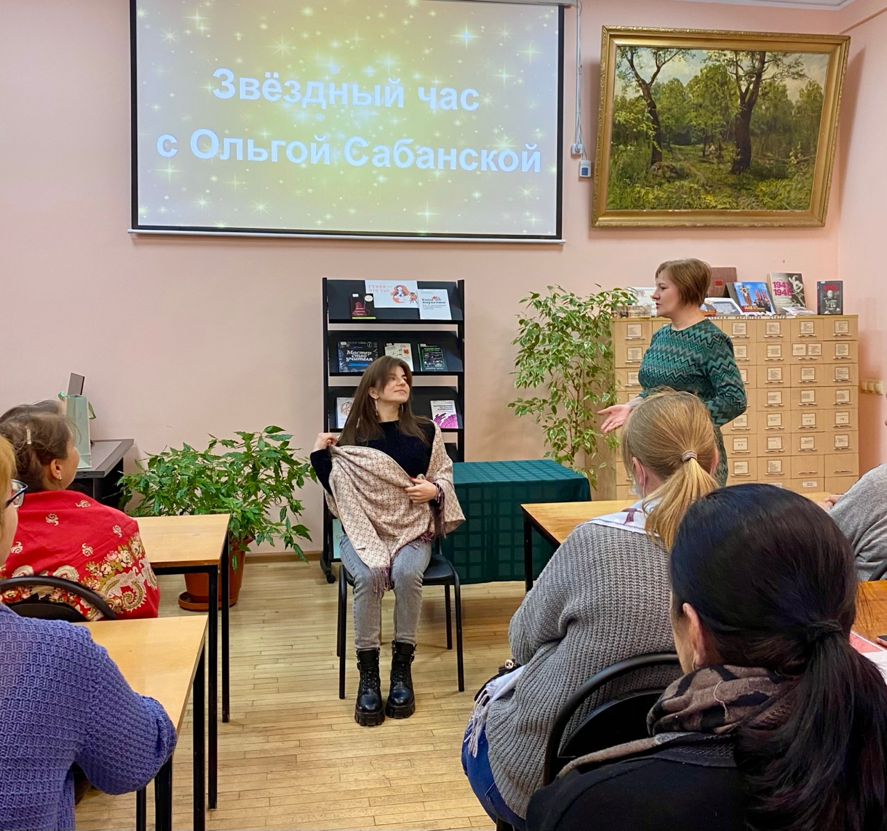 16 января в центральной библиотеке состоялось просветительское мероприятие «Звёздный час с Ольгой Сабанской». В уютной дружеской обстановке актриса театра и кино, член Российского союза писателей поделилась опытом и провела мастер-класс.
