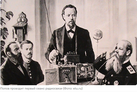 7 мая 1895 года — российский физик Александр Попов проводит первый сеанс радиосвязи с помощью созданного им радиоприемника. Он обнаруживал излучение электромагнитных волн на расстоянии до 60 м от передатчика. В качестве антенны Попов использовал проволоку, поднятую воздушными шарами на высоту 2,5 метра.