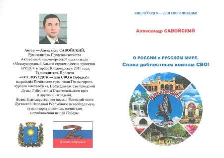 Дорогие читатели! У нас замечательная новость! В книжный фонд нашей библиотеки поступила книга кисловодчанина Александра Савойского «О России и Русском мире. Слава доблестным воинам СВО!»