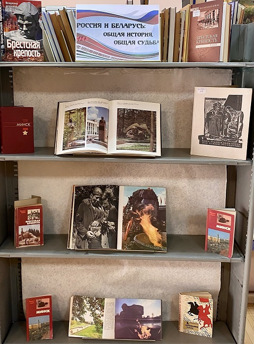 Ко Дню единения народов России и Беларуси была подготовлена книжная выставка, посвящённая героям и подвигам во время Великой Отечественной войны и Второй мировой войны. Она является ярким отображением общего исторического наследия двух братских народов. Эта экспозиция обращается к важным страницам истории, показывая, как героизм и мужество миллионов людей стали символом стойкости, единства и непобедимости. В центре внимания судьбы обычных солдат, партизан, тружеников тыла и граждан, которые в самые тяжелые годы обороняли дома, боролись за свободу и независимость своих стран.