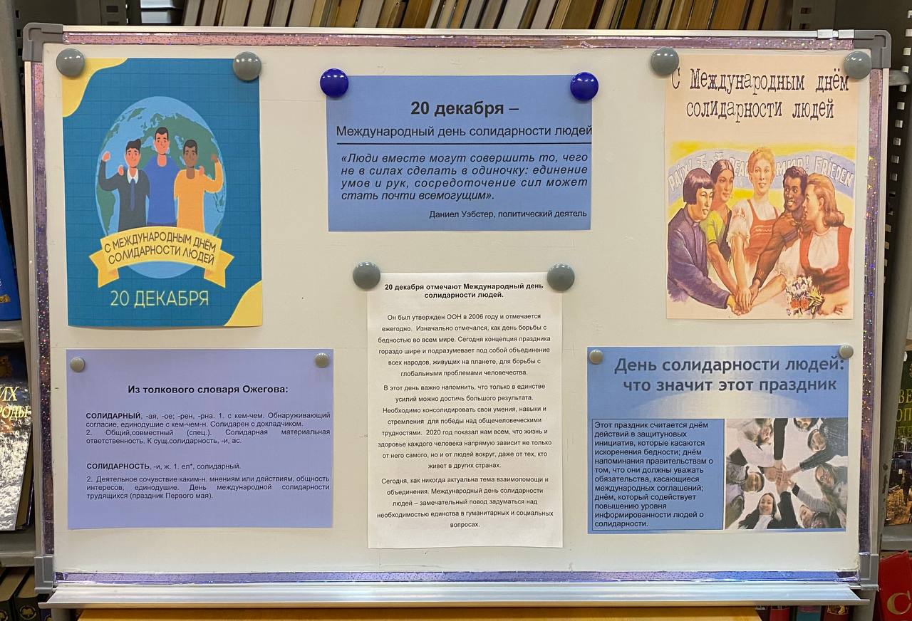 Международный день солидарности людей отмечается ежегодно 20 декабря, начиная с 2006 года, по решению Организации Объединенных Наций.