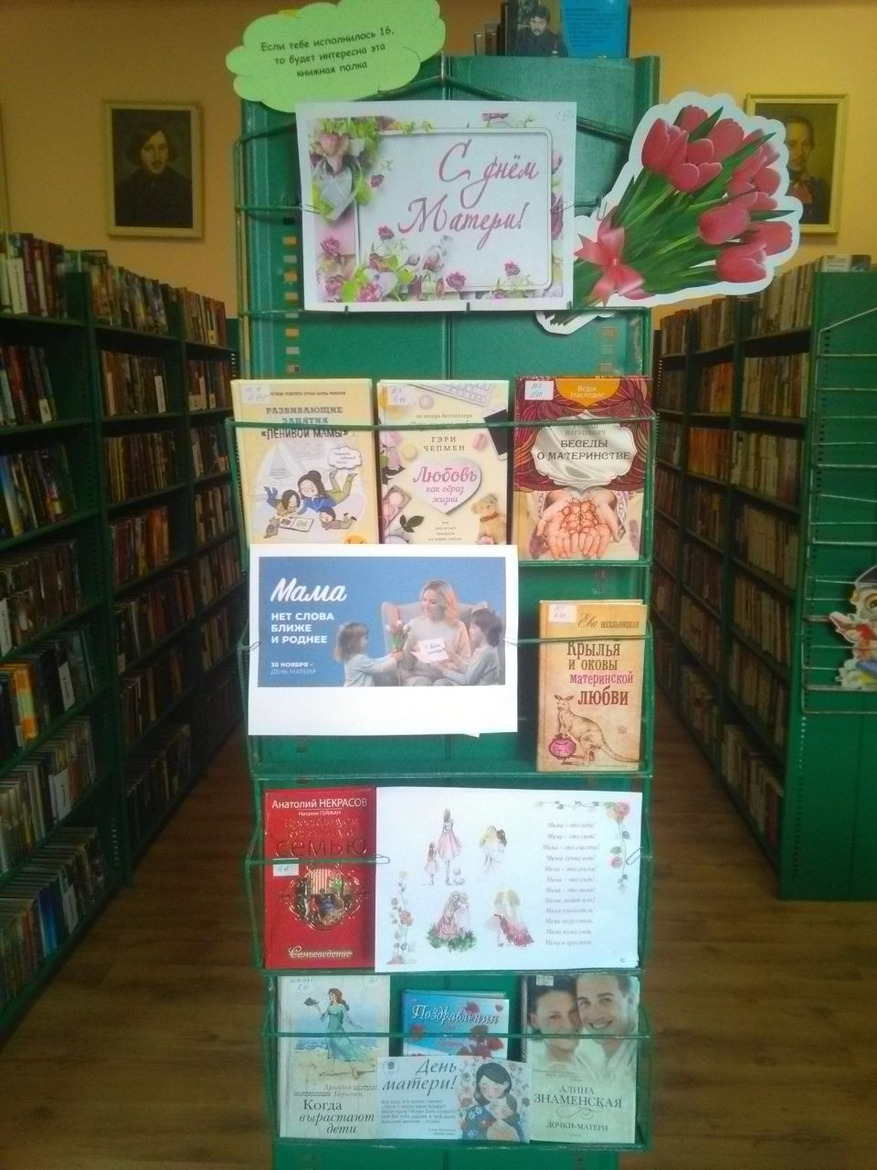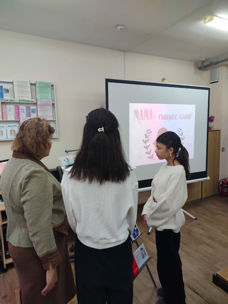 В честь этого замечательного праздника сотрудники центральной библиотеки провели мероприятие в МОУ СОШ №1 на котором ребятам рассказали о традициях празднования Дня матери, о том, откуда пришёл этот праздник в Россию и как отмечается в других странах, вспомнили и прочитали любимые стихи, притчи и легенды о матери.