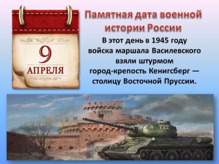 9 апреля 1945 года советские войска взяли штурмом, считавшийся неприступным Кенигсберг. Не имея значительного численного превосходства в живой силе, советские командиры проявили отличную подготовку при планировании операции. Город-крепость пал за три дня...